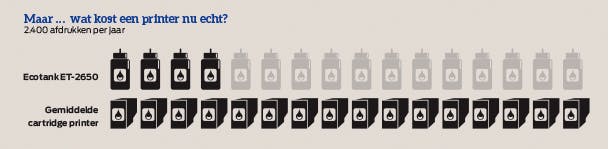 De EcoTank-printers hebben een hogere aanschafwaarde, maar worden standaard geleverd met heel veel inkt, waardoor