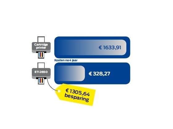 de printkosten erg laag zijn. De EcoTank wordt standaard geleverd met voldoende inkt om tot 14.000 pagina’s zwart-wit en 11.200 pagina’s kleur te printen. Hierdoor zijn de ‘eigendomskosten’ van de EcoTank-printers laag.