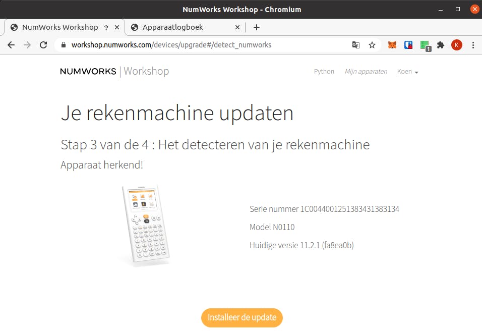 WebUSB is nog niet echt ingeburgerd. Het enige apparaat met WebUSB-ondersteuning dat we zelf al in handen hebben gehad, is de rekenmachine van NumWorks: die laat toe om de firmware te upgraden van in je webbrowser zonder dat je je zorgen hoeft te maken over drivers en firmwaretools.