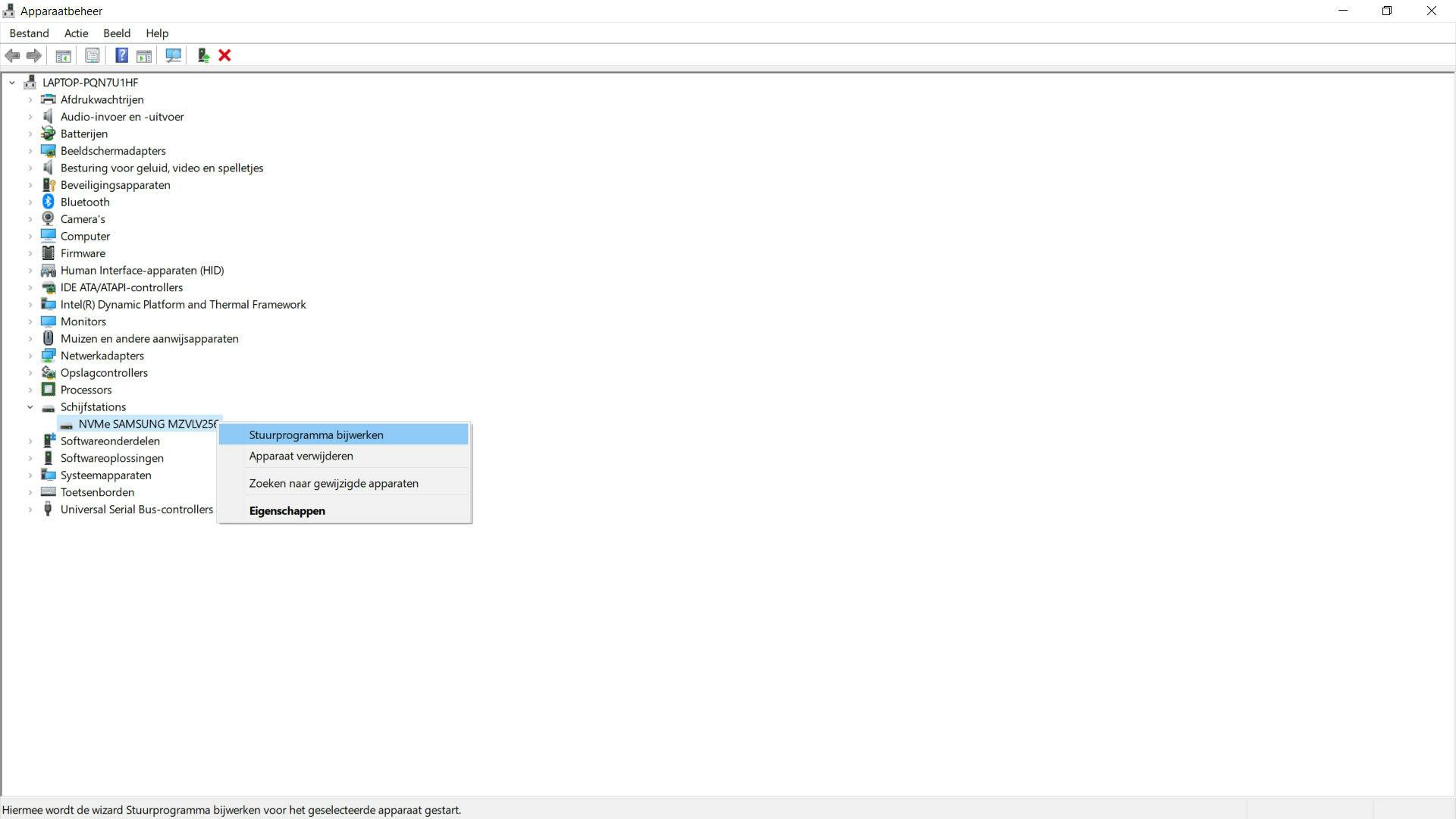Heeft dat ook niet geholpen? Check dan even op de website van de fabrikant van de harde schijf of er nieuwe drivers beschikbaar zijn. We moeten de schijf dan wellicht handmatig updaten. Zijn er geen nieuwe drivers, dan kun je verder niets doen. Zijn ze er wel? Download ze dan naar je computer en pak het bestand uit (meestal zitten die in een zip-bestand). Ga nu naar Apparaatbeheer en Schijfstations, selecteer je schijf en klik dit keer op Stuurprogramma bijwerken.