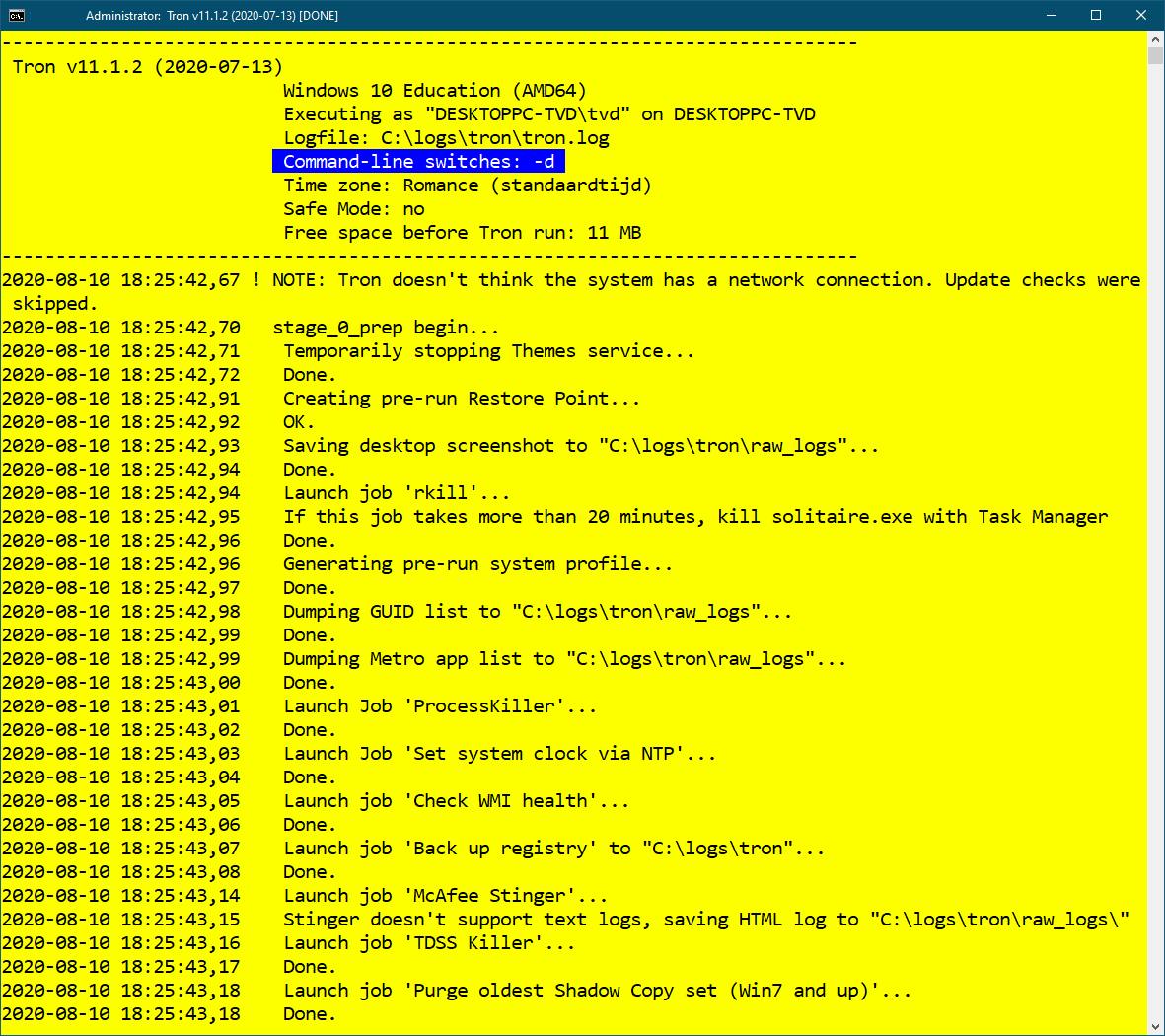 Fase 8 (‘Custom Scripts’) is tenslotte een geheel optionele fase die alleen maar wordt uitgevoerd wanneer je zelf een of meer batch-bestanden hebt geplaatst in de map \tron\resources\stage_8_custom_scripts. Die zal Tron dan sequentieel uitvoeren.