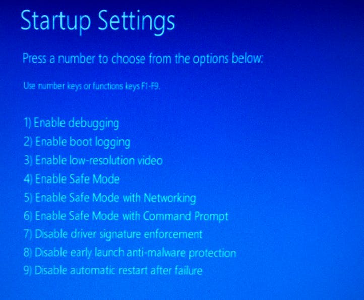 Daarna krijg je een Engelstalig scherm, de Startup Settings. Hier selecteer je Enable Safe Mode door het cijfer in te drukken dat naast deze functie staat. Vervolgens kun je inloggen met je wachtwoord. In de vier hoeken van het bureaublad verschijnen dan de woorden Veilige modus.