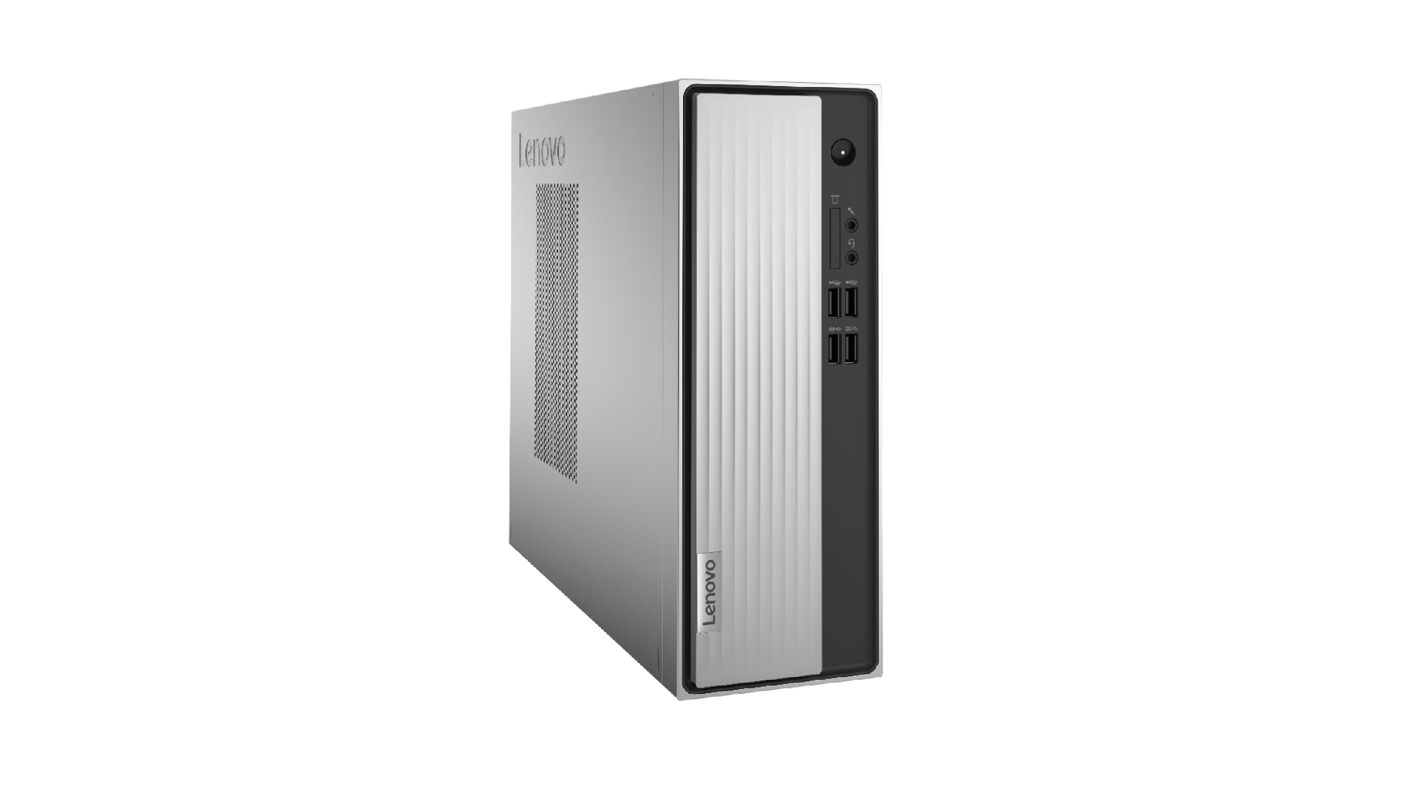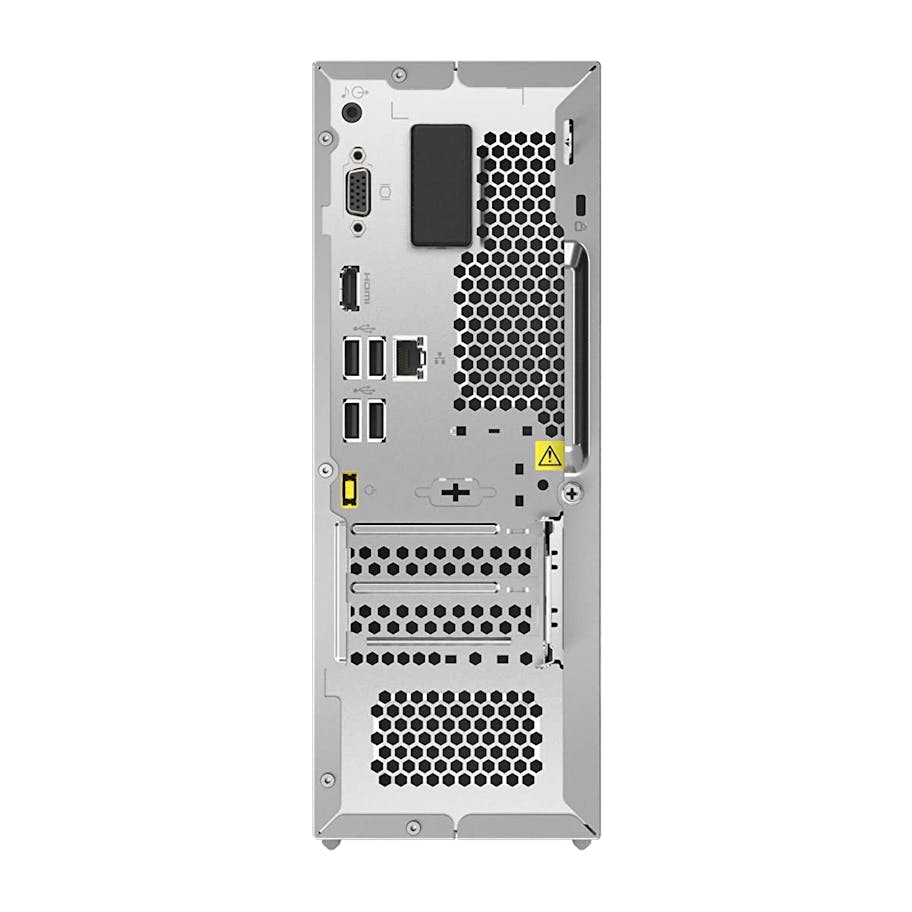 Lenovo heeft flink wat betaalbare Windows 11-desktops in de steigers staan. Deze uitvoering is al bij enkele (web)winkels te koop. Net zoals de meeste producten in dit overzicht, betreft het een mini-pc. De zilverkleurige behuizing bevat aan de voorzijde een zwarte strook waarin diverse aansluitingen zijn verwerkt. Zo heb je onder de aan-uitknop toegang tot vier usb-poorten. Aan de achterzijde staan er nog eens vier usb-poorten paraat om randaccessoires te koppelen.
