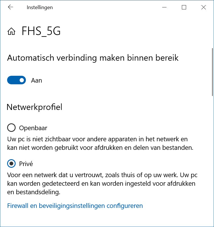 Het netwerktype (privé of openbaar) bepaalt dus welke beveiligingsinstellingen de firewall hanteert. Wanneer je voor het eerst verbinding maakt met een netwerk, vraagt Windows om welk type het gaat.
