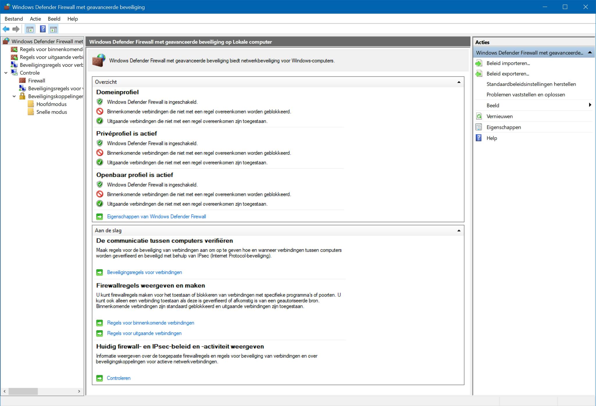 Natuurlijk kun je de ingebouwde firewall van Windows 10, die officieel en languit Windows Defender Firewall heet, simpelweg inschakelen en er niet meer naar omkijken. Toch is het handig om te weten op welke manier je computer wordt beschermd en welke instellingen bepalen hoe de programma’s op je computer met de buitenwereld communiceren.