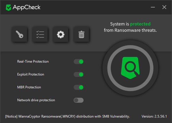 Je checkt gewoon even of de drie beveiligingsfuncties zijn ingeschakeld (Real-Time, Exploit en MBR). Gevorderde gebruikers kunnen met de ransomware-simulator KnowBe4 de effectiviteit van de tool controleren.