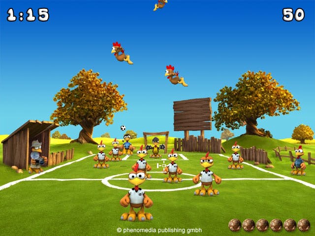 Mindscape brengt namelijk een speciale pc-game uit: Moorhuhn Voetbal. De makers zelf hebben als doelgroep "gestresste voetbalfanaten" voor ogen. En dan weet u ongeveer al hoe Moorhuhn Voetbal in elkaar steekt. De game bestaat trouwens uit twee onderdelen: Moor Kick en Power Goal.