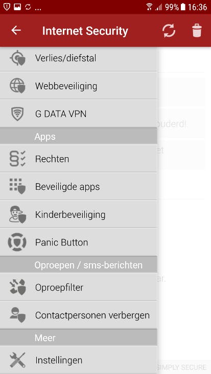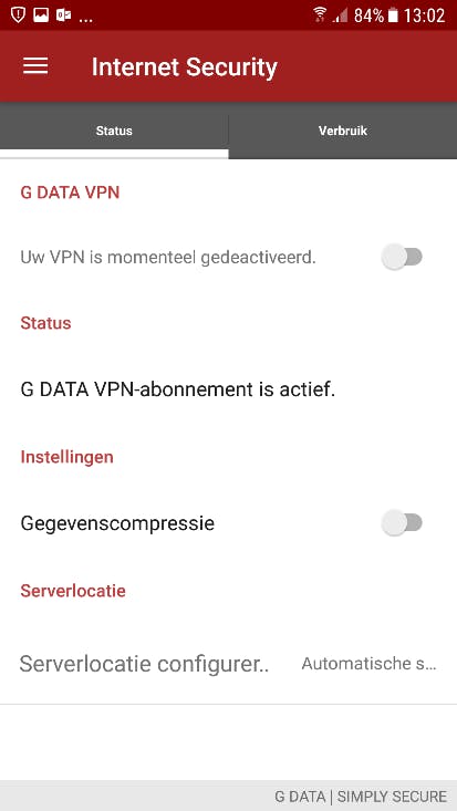 Open in de app het menu aan de linkerzijde van het scherm en klik op G DATA VPN: