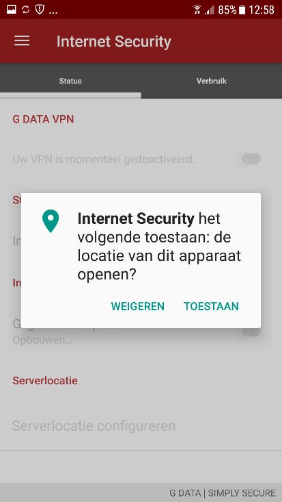 Deze light-versie geeft u 30 dagen recht op updates en 7 dagen recht op gebruik van de VPN-module. In het geval van G DATA Mobile Internet Security (zonder VPN), zal na 30 dagen gevraagd worden om uw licentiesleutel (=registratienummer) in te geven, waarmee u voor de aangekochte periode gebruik kunt maken van de volledige versie die u hebt aangeschaft in de G DATA Webshop. In het geval van G DATA Mobile Internet Security plus VPN, kunt u de VPN-module en daarmee uw betaalde abonnement direct activeren. Zie hiervoor stap 10 en verder.