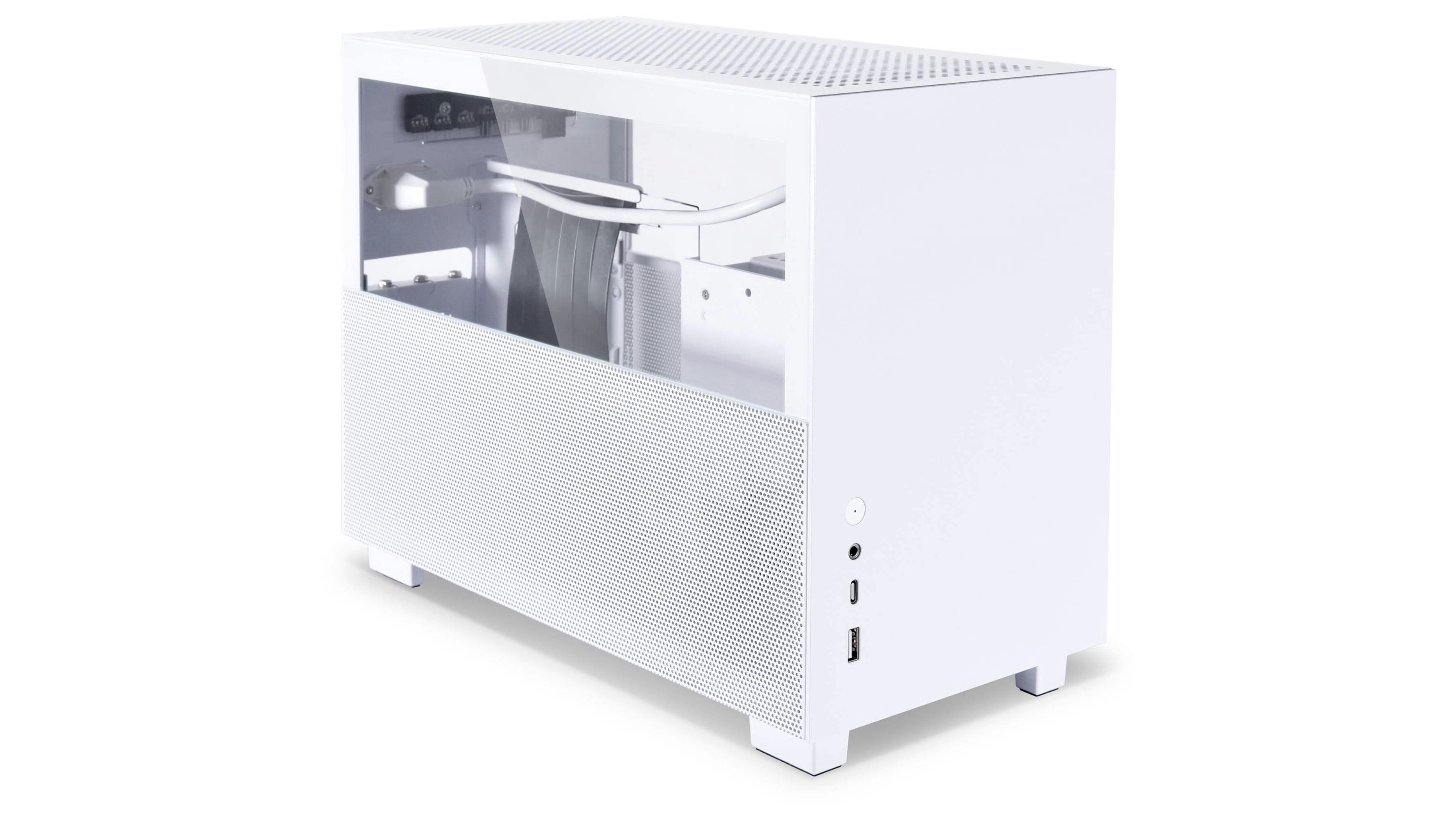 Het lijkt net een Xbox Series X, maar de NZXT H1 V2 is toch echt een pc-behuizing. Het zal je niet verrassen dat deze behuizing net als de NR200P MAX alleen geschikt is voor een itx-moederbord. NZXT heeft de H1 voorzien van een voeding en geïntegreerde waterkoeling. De grafische kaart zet je rechtop en sluit je aan via een PCIe4.0-riser cable. Let erop dat je daadwerkelijk de V2 in huis haalt, in de eerste versie zat een ontwerpfout in de riser cable waardoor de behuizing brandgevaarlijk was.