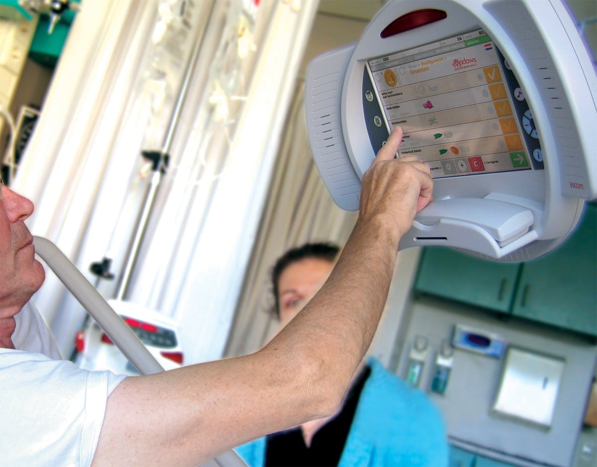 Nooit meer een dag van tevoren al op papier je maaltijdkeuze hoeven doorgeven - patiënten in het BovenIJ ziekenhuis kunnen sinds afgelopen week vanuit bed met één vinger op het beeldscherm hun maaltijd voor dezelfde avond samenstellen. Dat kan dankzij een slimme terminal, die inmiddels aan 225 bedden in het Amsterdamse ziekenhuis hangt. De Ascom teleCAREvision-terminals bestonden al langer. Tot nu toe werden ze gebruikt voor het aanbieden van internet, radio, televisie en telefonie. Omdat ze nu uitgerust zijn met speciale voedingssoftware kan de patiënt zelf contact leggen met de keuken en de menukeuze doorgeven. Het systeem is eenvoudig en patiëntvriendelijk. Iedereen kan ermee overweg door het gebruik van pictogrammen en doordat het systeem meertalig is: Nederlands, Engels, Frans, Arabisch en Turks.