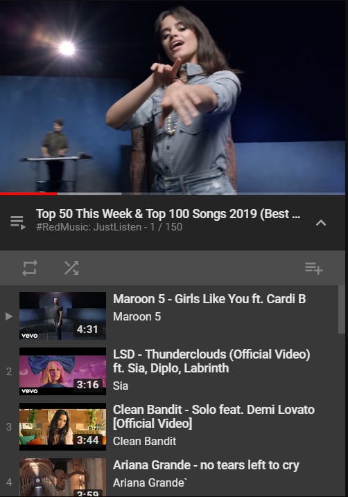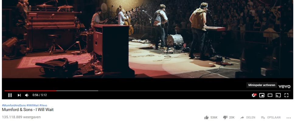 Veel meer is er niet aan. Maar mocht de video deel uitmaken van een grotere afspeellijst, dan is ook te zien welke nummers in de wachtrij staan. Klik daarvoor onderin op het pijl-icoontje dat naar beneden wijst. De hele afspeellijst wordt dan getoond, zoals je hieronder ziet.