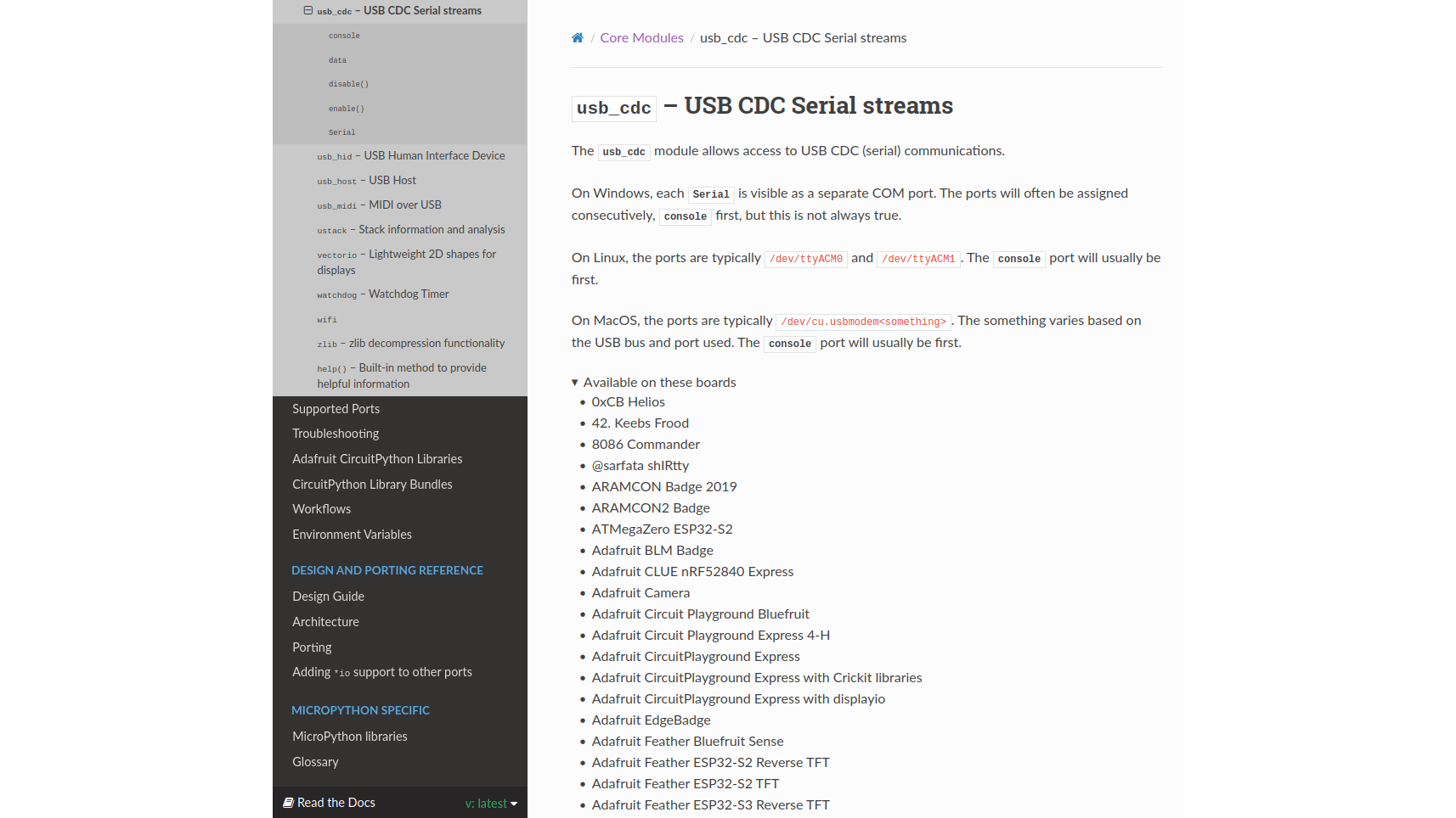 Voor de communicatie tussen microcontroller en computer gebruiken we een seriële interface via USB CDC. Onder Windows is het apparaat dan zichtbaar als een COM-poort, onder Linux als een apparaat zoals /dev/ttyACM0 en onder macOS /dev/cu.usbmodem<ennogiets>. Software op je computer kan dan met de microcontroller communiceren via deze COM-poort of het juiste apparaatbestand.