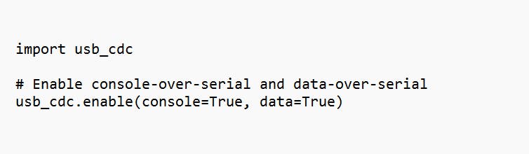 Nu we weten aan welke afspraken de microcontroller zich moet houden, kunnen we de CircuitPython-code hiervoor programmeren. Maak in Mu eerst een nieuw bestand aan en plaats daarin de volgende code om dataoverdracht via USB CDC mogelijk te maken: