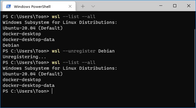 Mocht je WSL naderhand weer willen verwijderen, dan kan dat met het commando: