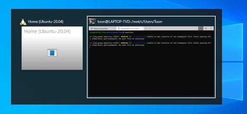 Verder kun je de inhoud van het klembord tussen Linux en Windows delen, en Windows-tools rechtstreeks vanuit de WSL-opdrachtregel opstarten: probeer het maar eens met notepad.exe of explorer.exe. Deze Windows-tools worden trouwens op dezelfde manier als native Linux-tools behandeld, zoals uit het volgende voorbeeld blijkt: