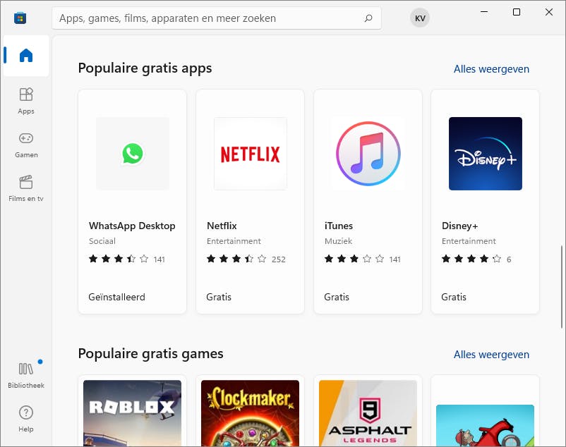 Je kunt gewoon software uit de Microsoft Store installeren