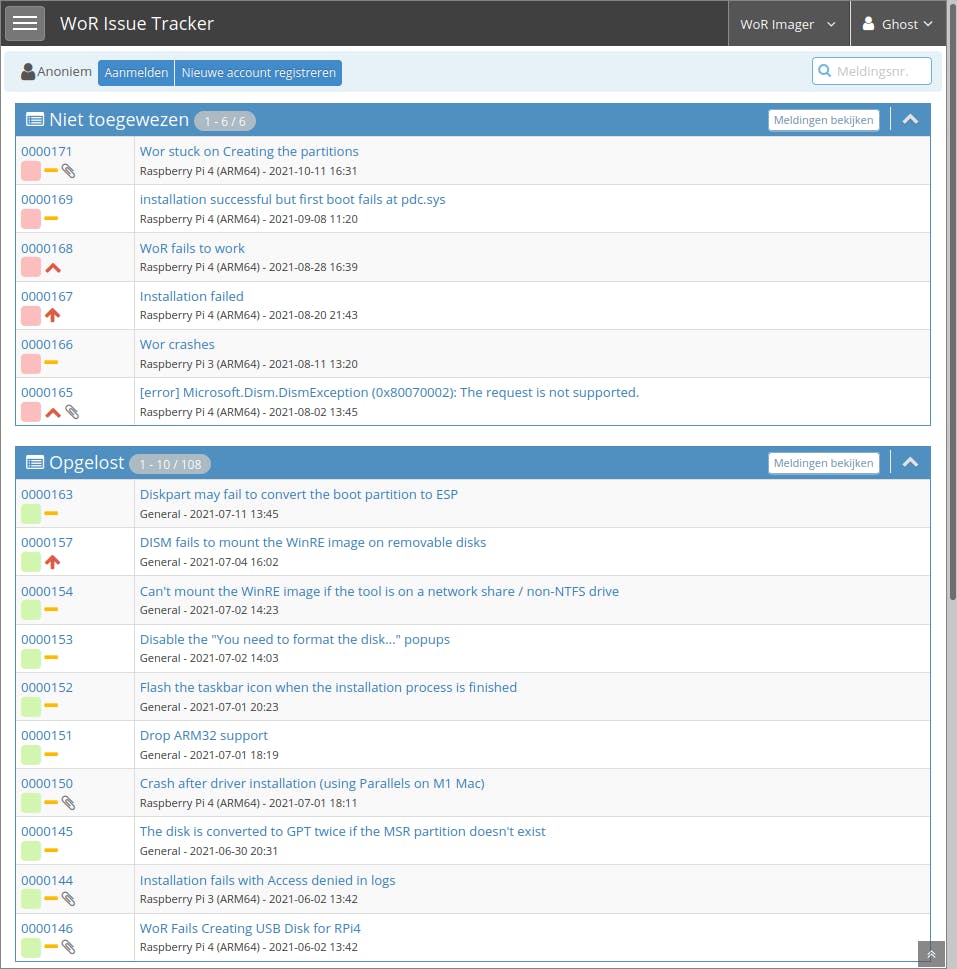 Loop je tegen een fout aan, voeg dan een foutbeschrijving toe op de pagina WoR Issue Tracker. Voeg het logbestand toe uit de directory logs van WoR, zodat de ontwikkelaars alle informatie hebben om te onderzoeken wat er is misgegaan.