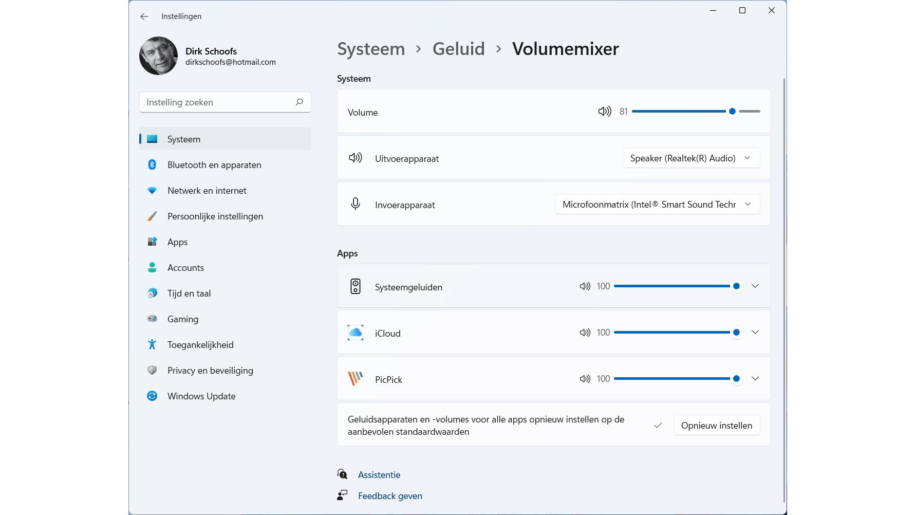 In Windows 10 kun je ook bij de Volumemixer komen via Instellingen / Geluid / Geavanceerde geluidsopties / Volume- en apparaatvoorkeuren van app. Nog sneller kun je dit regelpaneel openen vanuit het systeemvak. Klik met de rechtermuisknop op het geluidpictogram en klik op Volumemixer openen. Hierdoor wordt deze mixer in een pop-upvenster geopend. Hier kun je de schuifregelaars voor luidsprekers, systeemgeluiden en andere beschikbare opties aanpassen tot hun maximale comfortniveau. Soms zie je daar ook de optie Opnieuw instellen naar de door Microsoft aanbevolen waarden.
