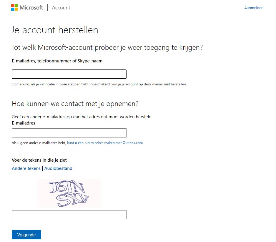 Probeer in te loggen op je account via account.microsoft.com. Nadat je een verkeerd wachtwoord hebt ingevoerd, kun je op Wachtwoord vergeten? drukken. Vervolgens moet je je identiteit bevestigen. Dit kan onder meer door een verificatiecode naar een e-mailadres te laten sturen dat niet is gekoppeld aan je Microsoft-account. Is deze optie voor jou niet beschikbaar, dan dien je het formulier voor accountherstel van Microsoft in te vullen. Je zult dan enkele vragen over je account moeten beantwoorden, zodat Microsoft kan bepalen of het account daadwerkelijk van jou is.