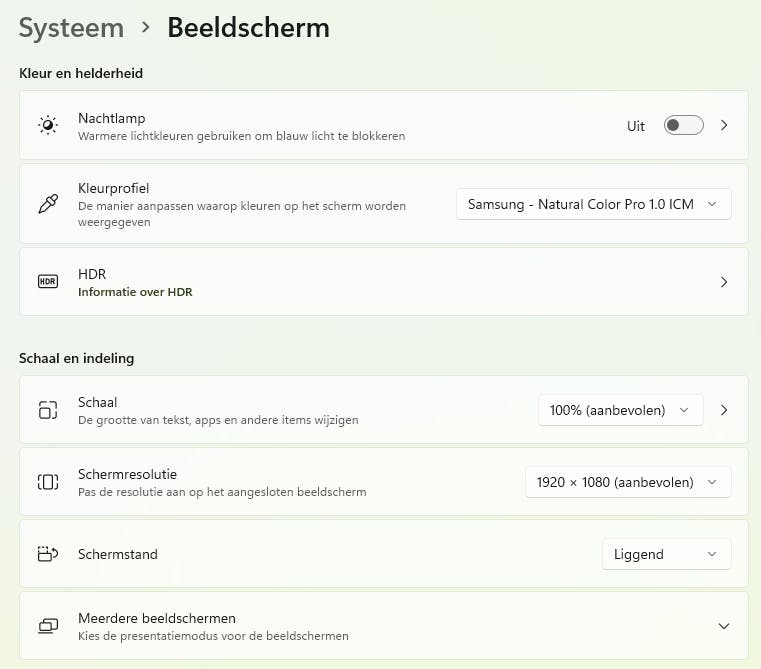 Ga in de Instellingen-app bij Systeem naar het menu Beeldscherm. Onder Schaal en indeling kun je onder meer de tekstgrootte en schermresolutie aanpassen, maar ook de schermstand. Als het goed is staat deze standaard op Liggend. In het dropdownmenu kun je echter ook kiezen voor Staand. Wil je het beeld gespiegeld hebben dan kies je voor Liggend (gespiegeld) of Staand (gespiegeld). De werking van de muis verandert ook, dus houd daar rekening mee. Afhankelijk van hoe je je beeldscherm hebt staan, kies je welke stand je het fijnst vindt werken.