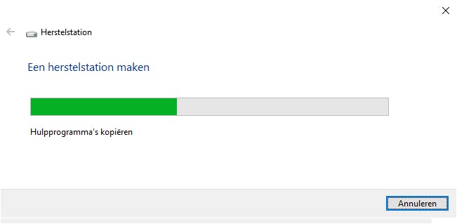 Wil je alleen een usb-stick om een systeemkopie te herstellen, zonder dat daarop ook de installatiebestanden voor Windows 10 staan? Maak dan een zogeheten herstelstation. Dit is een usb-stick die alleen een paar opstartbestanden bevat, waarmee je ook systeemkopieën kunt herstellen. Open het startscherm en typ de opdracht herstelstation gevolgd door Enter. Zorg dat je een usb-stick van minimaal 1 GB tot je beschikking hebt. Haal het vinkje weg bij Maak een back-up van de systeembestanden naar het herstelstation; hiermee voorkom je dat de Windows 10-installatiebestanden alsnog naar de stick worden gekopieerd. Door het vinkje weg te halen, heb je maar 1 GB opslagruimte nodig (anders wordt het totaal 8 GB). Druk op de knop Volgende. Bestaande bestanden op de usb-stick worden verwijderd. Het totale proces van aanmaken duurt maar een paar minuten. Is de stick klaar? Dan kun je hiermee de computer opstarten en vervolgens vanaf paragraaf 10 ‘Computer starten vanaf dvd of usb’ de stappen in deze basiscursus verder vervolgen.