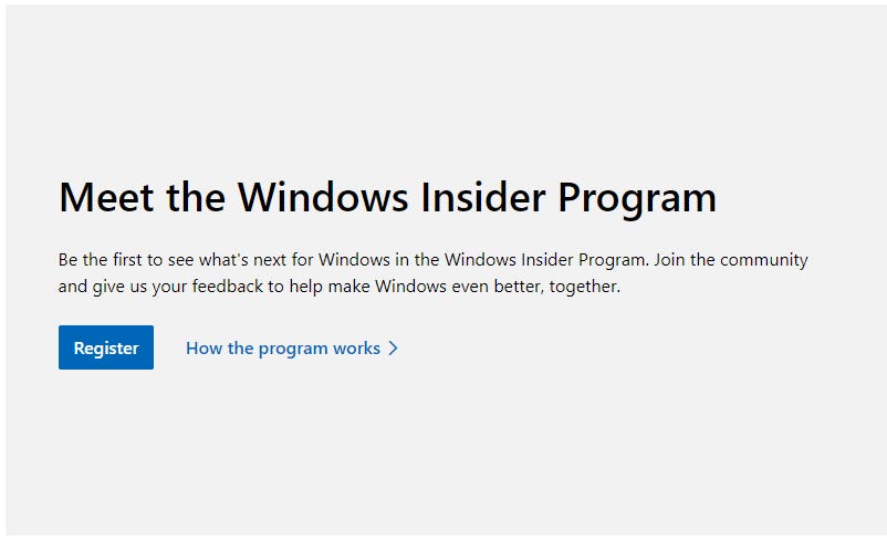 We gaan in dit artikel Windows 11 installeren als schone installatie. Dat betekent dat alle bestaande partities op de harde schijf worden verwijderd, en daarbij dus ook de oude Windows 10-installatie en de bijbehorende gebruikersaccounts en persoonlijke documenten. Om Windows 11 schoon te installeren heb je een opstartmedium nodig. Dat kan een dvd-schijfje zijn, of een usb-stick. Die laatste heeft de voorkeur, omdat een usb-stick nu eenmaal sneller werkt dan een dvd. De stick moet een opslagcapaciteit hebben van minstens 8 GB. We leggen je uit hoe je een opstartbare usb-stick maakt. We beginnen eerst met de huidige beschikbare previewversie (testversie) van Windows 11. Microsoft heeft voor de previewversies ISO-bestanden beschikbaar gesteld die je kunt downloaden als je je aanmeldt als Windows Insider; de testomgeving van Microsoft waar je de nieuwste versies van hun besturingssystemen kunt uitproberen. Als je nog niet bent aangemeld als Windows Insider, dan moet je dat eerst doen voordat je toegang hebt tot de Windows 11 ISO-bestanden. Jezelf aanmelden als tester bij Windows Insider doe je via https://insider.windows.com/ Ga op die pagina naar het onderdeel Meet the Windows Insider Program en klik op de blauwe knop Register.