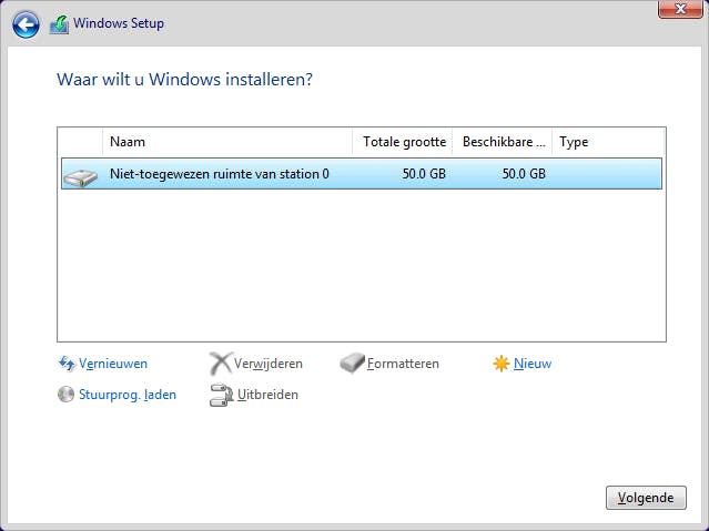 In het daarop volgende scherm kun je kiezen op welke partitie je Windows 11 wil gaan installeren. Hierin heb je geheel de vrije hand. Je kunt Windows 11 bijvoorbeeld op de eerste partitie installeren, en je (oude) data op de tweede partitie laten staan. Ga je echt helemaal voor een schone lei, dan verwijder je alle partities totdat er één enkele overblijft, en kies je die partitie om Windows 11 op te installeren. Later kun je binnen Windows 11 altijd nog extra partities aanmaken.