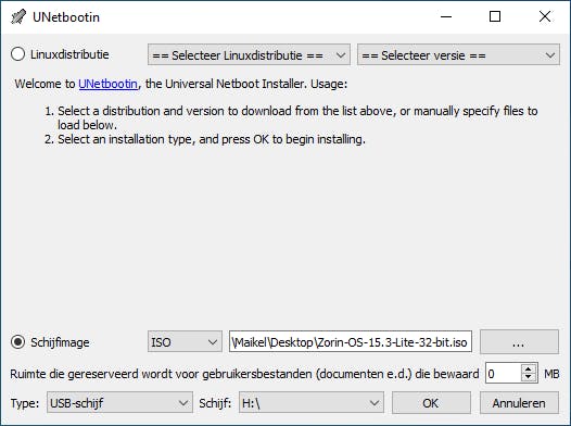 Voor de installatie van Zorin OS heb je een usb-stick van minimaal 4 GB nodig. Hierop zet je het installatiebestand, waarna je het besturingssysteem kunt installeren. De makers adviseren voor de preparatie van de usb-stick het programma BalenaEtcher, maar wij hebben betere ervaringen met UNetbootin. Surf met een willekeurige pc naar https://unetbootin.github.io. Er bestaan versies voor Windows, macOS en Linux. Download het programma en open dit bestand. Onder Windows verschijnt UNetbootin meteen, want er is verder geen installatie nodig.