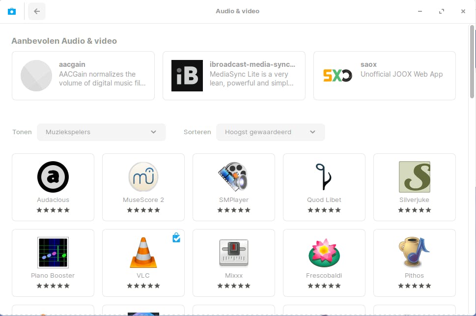 Er verschijnt een aantal suggesties. Klik op een van de categorieën om gerichter naar programma’s te speuren. Bovendien kun je via het vergrootglas rechtsboven op trefwoord zoeken. We geven je wederom enkele voorbeelden. Als je een mediaspeler zoekt die alle mediabestanden vloeiend afspeelt, is VLC een absolute aanrader. Gebruik verder Calibre voor het beheer van e-books en Skype voor het voeren van videogesprekken. Voor het opnemen en bewerken van audiobestanden is Audacity de moeite waard. Liefhebbers van downloadnetwerken kunnen bijvoorbeeld SABnzbd+ of qBittorrent aan het systeem toevoegen. Tot slot zijn er allerlei vermakelijke spelletjes beschikbaar.