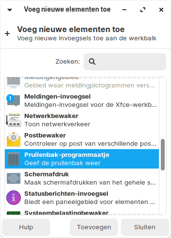 Je breidt de taakbalk ook naar hartenlust uit met extra statuspictogrammen. Klik met de rechtermuisknop op de taakbalk en kies Werkbalk / Nieuwe elementen toevoegen. Er verschijnt een behoorlijk lange lijst met opties. Zo kun je bijvoorbeeld de prullenbak, een pictogram met de processorbelasting en een afsluitknop in de taakbalk integreren. Selecteer het gewenste statuspictogram en bevestig met Toevoegen.