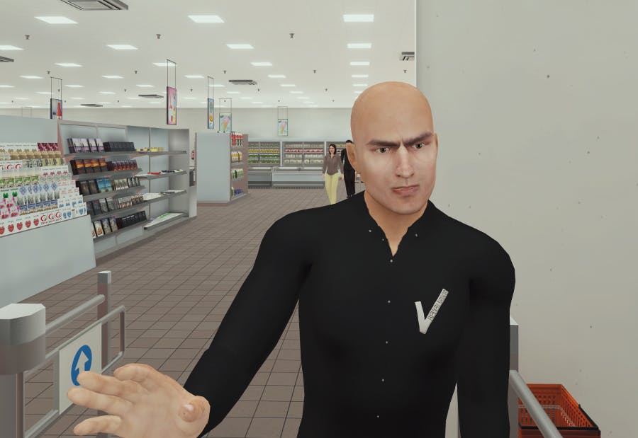 Een conversatie waarbij iemand oefent om een praatje met een vreemde te maken, kan er bijvoorbeeld zo uitzien. Virtueel karakter: “Als ik met de trein reis, weet u dan misschien hoe ik weet wanneer ik uit moet stappen?” Gebruiker: “U kunt letten op de gesproken aankondigingen in de trein.” Virtueel karakter: “Oh, dan zal ik daarop letten. Dank u wel.” In een kledingwinkel kan de verkoper bijvoorbeeld vragen: “In welke prijsklasse bent u op zoek?” Na het antwoord van de vr-gebruiker zegt het karakter vervolgens: “Oké, dat is prima”, ongeacht de bedragen die iemand noemt.