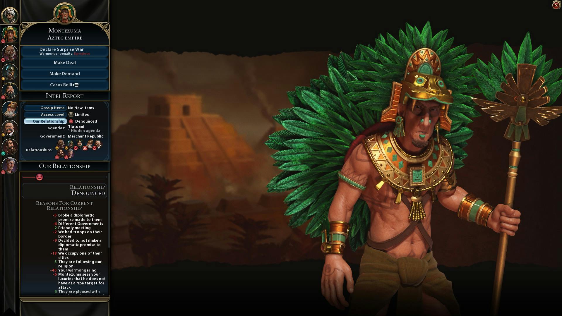 Een ander hoogtepunt zijn de fenomenaal uitziende leiders van andere beschavingen waar je geheid ruzie mee krijgt. De gelaatsuitdrukkingen en mimiek van tegenstrevers als Montezuma en Tomyris zijn zo overtuigend dat je zou zweren dat je naar een Pixar-film zit te kijken. De vernietigende blik van Catharina de Medici is op zichzelf al een reden om haar bespottelijke vredesvoorstellen af te wijzen en Parijs plat te gooien met bommenwerpers.