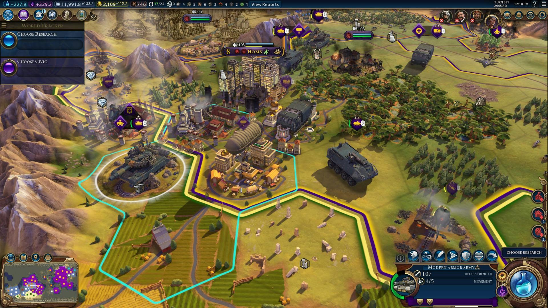Zodra het spel verder is gevorderd raakt de kunstmatige intelligentie van Civ 6 de draad kwijt en lijkt het te vergeten waar het mee bezig is. Vooral bij beschavingen die niet veel ruimte hebben gaat het te vaak fout en zien we steden omringd met tientallen eenvoudige Horsemen, terwijl onze eerste tanks al de lopende band afrollen. Ook al komt de computertegenstander goed mee qua technologie, zelfs op het hoogste moeilijkheidsniveau blijft het lastig om een stad te veroveren.