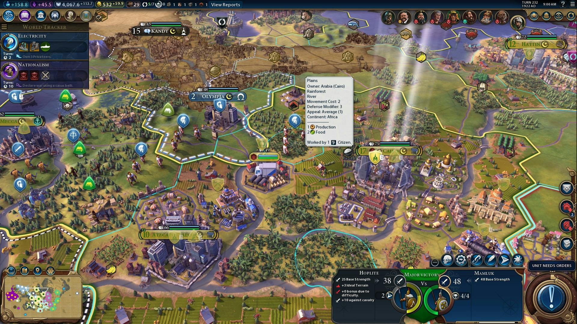Na vijftienhonderd woorden aan vernieuwing en verdieping vraag je jezelf misschien af hoe je dat allemaal onder de knie gaat krijgen. Dat is nou net een punt waar Civilization 6 de mist in gaat. Als Atlas die de wereldbol op zijn schouders moet dragen, heeft de interface van Civ 6 er soms de grootste moeite mee om alle relevante informatie goed over te brengen. De tutorial helpt een nieuwe speler aardig op weg en de Advisor doet haar best om alle concepten uit te leggen, maar veel blijft onduidelijk.