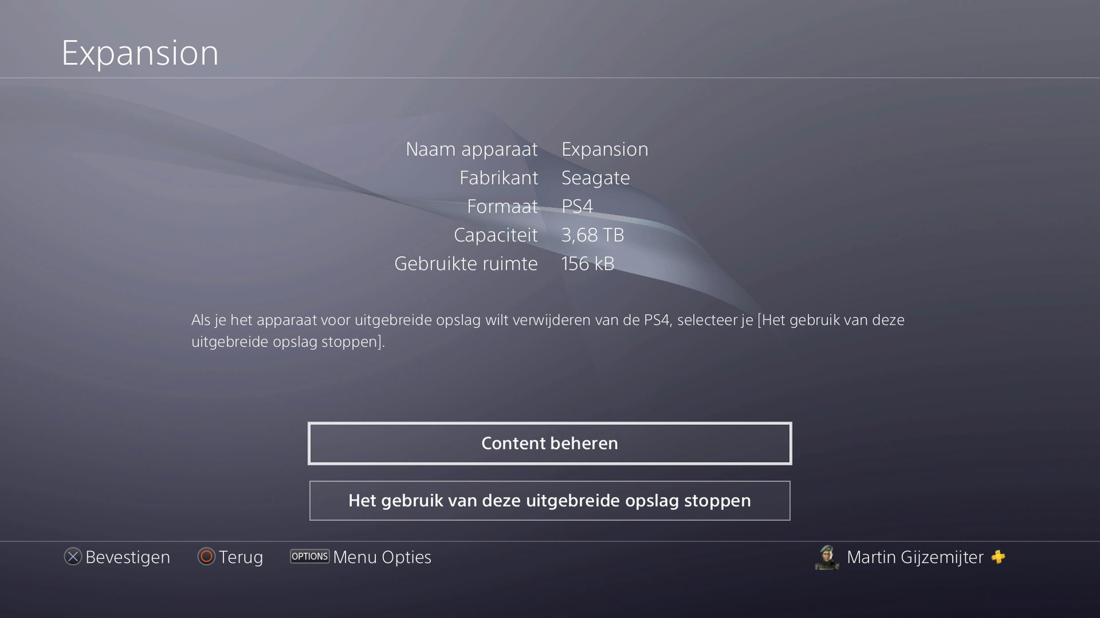 Je mag niet zomaar de stekker van de externe schijf uit de PlayStation trekken. Dit kan leiden tot onleesbare gegevens op je harde schijf, en er zelfs voor zorgen dat je de harde schijf volledig opnieuw moet formatteren. Geen ramp, je kunt alles weer opnieuw installeren, maar wel een hoop gedoe. Alsje de harde schijf om wat voor reden dan ook tóch wilt loskoppelen, dan doe je dit door de PS-toets op je controller ingedrukt te houden, en vervolgens in het snelmenu te drukken op Geluid/apparaten en daarna op de optie Gebruik van uitgebreide opslag stoppen.