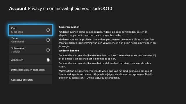 Zo kun je bijvoorbeeld een leeftijdsgrens instellen voor je kind, waardoor ze geen games spelen die niet voor hen bedoeld zijn – wederom afhankelijk van de PEGI-keuring van een spel. Onder Privacy en onlineveiligheid / Xbox Live-privacy / Details bekijken en aanpassen / Kopen en downloaden kun je instellen dat je kind eerst toestemming moet vragen voor het aanschaffen van digitale software. Je kunt dit ook standaard instellen door de optie Standaardinstellingen voor kinderen of Standaardinstellingen voor tieners te selecteren.