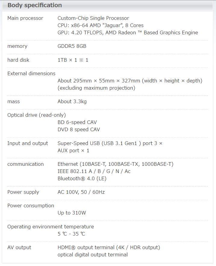 PlayStation 4 Pro, eerder al uitgelekt als PlayStation 4 Neo, heeft onder andere een snellere videokaart, een snellere kloksnelheid en een harde schijf met 1TB geheugen. De console heeft de mogelijkheid om games weer te geven in een 4K-resolutie, wat betekent dat er acht miljoen pixels worden geproduceerd door PlayStation 4 Pro om een scherper beeld te kunnen tonen. De volledige specificaties zijn onderaan dit artikel zichtbaar.