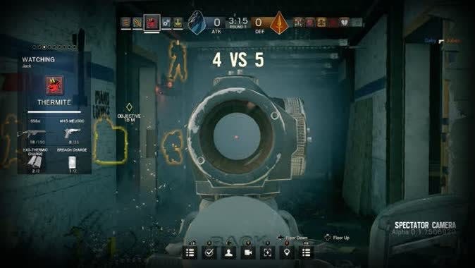 Verdedigers kunnen, afhankelijk van de Operaters (klassen) die ze kiezen, onder meer jammers, boobytraps, schilden en prikkeldraad plaatsen. Het is aan hen om belangrijke ruimtes te barricaderen. Aanvallers zoeken in de tussentijd met drones naar de plaats van de objective, maar door jammers goed te plaatsen zal ze dat onmogelijk lukken. Verdedigers beschikken veelal over submachine guns, aanvallers kunnen hun heil zoeken bij het zwaardere geschut.