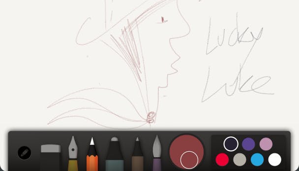 Heel wat tekenapps lijken op elkaar, maar Tayasui Sketches onderscheidt zich door zijn eenvoud. Je krijgt een uitgebreide materiaalkoffer en de strakke interface werkt prettig. De makers besteden ook veel aandacht aan veegbewegingen (ook wel gestures). Zo kun je bijvoorbeeld met twee vingers naar links swipen om een handeling ongedaan te maken. Ook handig zijn de patroonpenselen en originele lettertypes. De Pro-bundel met nog meer leuke extra's kun je voor het aanschaffen gedurende één uur gratis proberen.