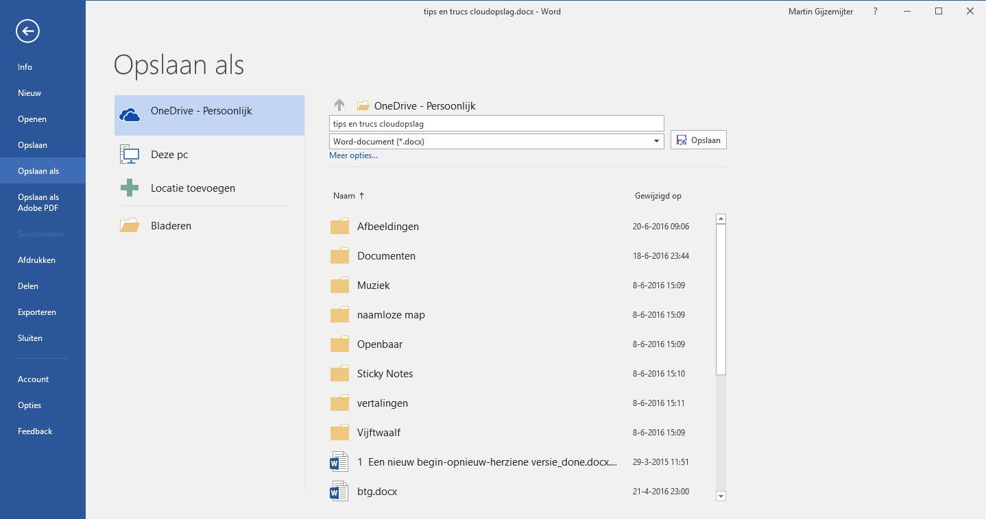 Je Office-documenten opslaan in de cloud is een stuk eenvoudiger geworden met de komst van Office 365, tenminste, als je het niet erg vindt om gebruik te maken van OneDrive. Microsoft heeft namelijk ondersteuning ingebouwd voor OneDrive, maar niet voor andere clouddiensten. Om je OneDrive-account te koppelen als je niet ingelogd bent met je Microsoft-account) klik je op Bestand / Opslaan als / OneDrive, en vervolgens op Toevoegen. Log in met je OneDrive-account en je kunt voortaan rechtstreeks openen vanuit en opslaan in OneDrive.