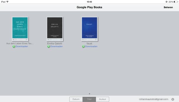Veel e-books zijn al voor zo'n vijf euro te krijgen, nieuwere boeken kosten iets meer. Google Play Books kent voor Android-systemen een vrijwel gelijk aanbod en je kunt boeken meteen vanuit de app aanschaffen. Een gemiddeld e-book is slechts een paar megabyte groot, dus je kunt makkelijk een waslijst aan boeken op je tablet zetten. Eenmaal gekocht, is het bestand (en dus het boek) jouw eigendom, je hoeft dus niet bang te zijn dat het weer van je tablet verdwijnt na een bepaalde tijd. Google Play Books is overigens ook voor de iPad verkrijgbaar, maar net als de film-variant kun je boeken niet direct aanschaffen vanuit de iPad-versie van de app.