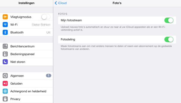 Tip 09 Zet de schuif achter Mijn fotostream aan om automatisch foto's van je iPad naar iCloud te kopiëren via wifi.