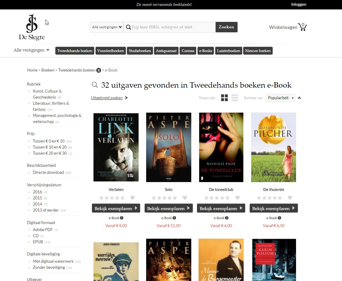 Van steeds meer al bestaande titels verschijnt ook een digitale versie, en van nieuwe titels is in zo’n tachtig procent van de gevallen ook meteen een e-book-versie beschikbaar. Bovendien zijn er steeds meer websites, zoals De Slegte en Tom Kabinet, waar tweedehands e-books worden aangeboden. Tegelijkertijd wordt het steeds makkelijker om e-books te lezen. Er is een enorm aanbod speciale e-readers en omdat de schermen van tablets en smartphones flink zijn verbeterd, zijn er ook steeds meer mensen die hun boeken op deze apparaten lezen.