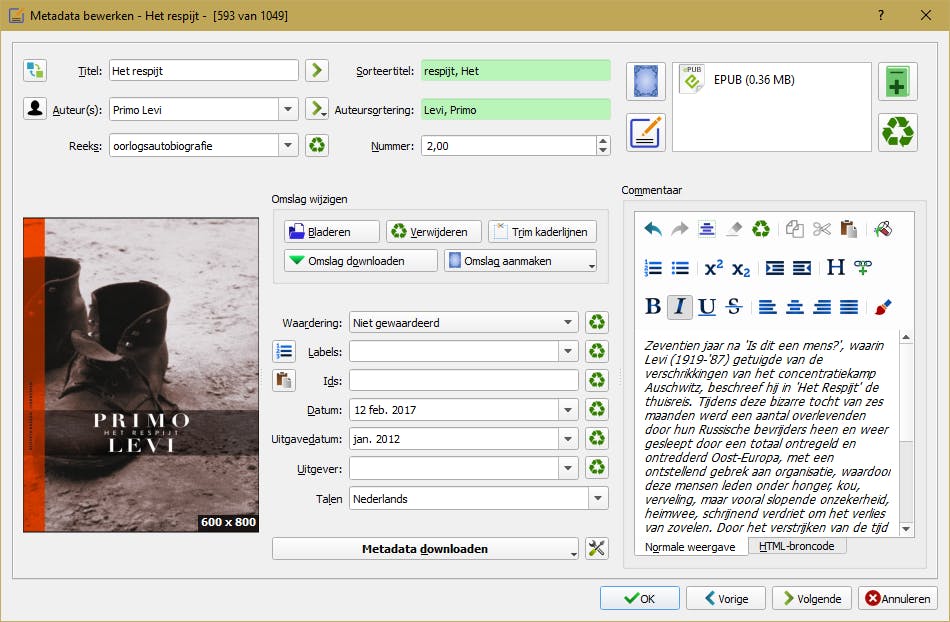 Extra tip: interessant bij Bronnen voor Metadata is de kolom Prioriteit omslag. Afhankelijk van het getal dat hier staat (hoe lager, des te meer voorkeur) zal Calibre op die plek een omslag zoeken en downloaden wanneer deze ontbreekt.