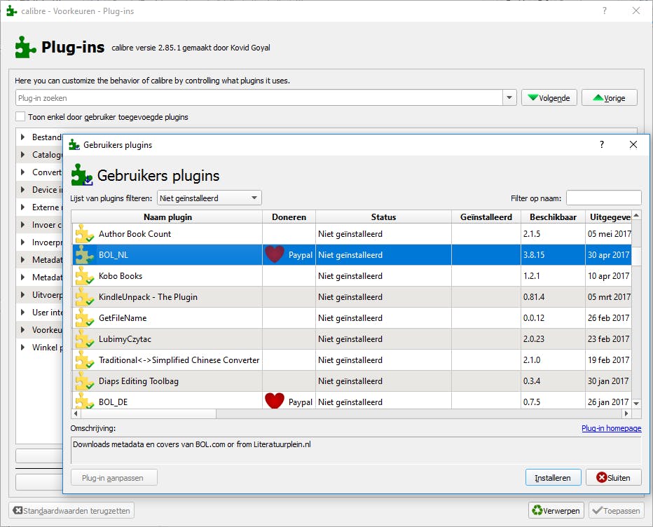 Bij tip 3 las je hoe je ISBNdb kunt raadplegen voor ontbrekende metadata van je boeken. Er zijn nog twee belangrijke bronnen, die niet standaard worden geraadpleegd: www.bol.com en www.amazon.nl. Deze zijn echter via plug-ins alsnog aan Calibre toe te voegen. Ga hiervoor naar het onderdeel Nieuwe plug-ins verkrijgen (zie tip 6) en installeer de plug-ins BOL_NL en Amazon.com Multiple Countries. Herstart Calibre. Druk nu op Ctrl+D en kies vervolgens voor Download configureren. Schakel BOL_NL en Amazon.com Multiple Countries in door er een vinkje voor te zetten. Klik bij deze laatste nog even op de knop Geselecteerde bron configureren en zorg er onderaan voor dat de Amazon-website van Nederland is geselecteerd.