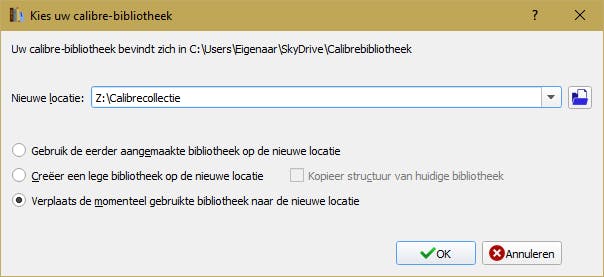Je verplaatst je Calibre-boekenkast eenvoudig naar een andere locatie