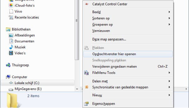 Stel, je wilt de inhoud van map c:\hoofdmap\submap opvragen. Dat kan met het dir-commando: dir c:\hoofdmap\submap. Of je navigeert naar de gewenste map met cd hoofdmap, gevolgd door cd submap, waarna je dir uitvoert. Of makkelijker: je bladert in Windows Verkenner naar de gewenste map, waarna je een lege plaats in het Verkenner-venster met Shift+Rechtermuisknop aanklikt. In het contextmenu selecteer je vervolgens Opdrachtvenster hier openen. We blijven nog even bij het dir-commando, want dat heeft enkele interessante parameters, zoals dir /? je al duidelijk maakt. Wil je bijvoorbeeld de inhoud sorteren op datum (recentste bestanden eerst), dan doe je dat met dir /O-D.