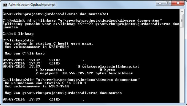 Stel, je hebt frequent toegang tot een bepaalde map nodig. Dat is niet zo handig wanneer die map diep genest zit. Dat valt op te lossen door een koppeling naar die map te creëren. Ga als administrator naar de opdrachtprompt en voer het volgende commando uit: mklink /J c:\snelmap "d:\map1\submap\subsubmap". Wanneer je vervolgens data opslaat in de map c:\snelmap, dan komen die gegevens automatisch (ook) terecht in die diep geneste map. Naderhand mag je de 'linkmap' (c:\snelmap) weer verwijderen als je dat verkiest; de data in de diep geneste map blijven behouden. Let wel: wanneer je bestanden uit die linkmap verwijdert, dan verdwijnen die wél ook uit de diep geneste map!