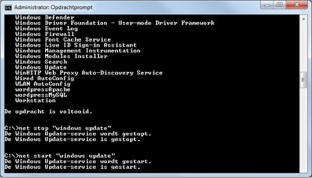 Je weet vast dat er heel wat services op de achtergrond actief zijn in Windows. Het commando net start vertelt je precies welke services. Nu is het ook mogelijk services vanuit de opdrachtprompt stoppen te zetten en (weer) op te starten. Stel, je wilt voorkomen dat Windows zomaar je pc zou herstarten omdat er updates klaar staan, dan schakel je die service uit met net stop "windows update". En zoals je wellicht al vermoedde, activeer je een service met net start, gevolgd door de exacte naam van de service. De aanhalingstekens gebruiken we overigens om duidelijk te maken dat het om een begrip (of pad) gaat, en dus niet om afzonderlijke woorden.